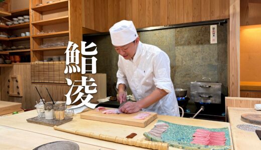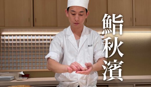 「鮨 秋濱」こんなところにすごい店!外観からは想像できない凛とした空間に衝撃!145年の吉野檜の一枚板カウンターがお出迎え