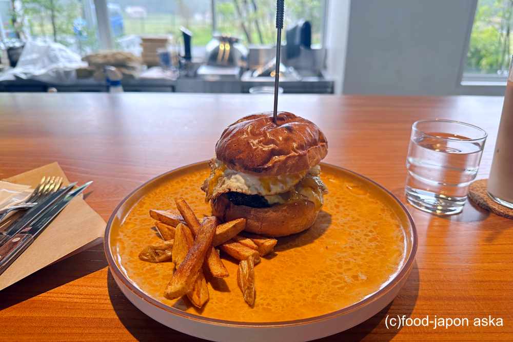 小松市にある「Auberge eaufeu(オーベルジュ オーフ)」のカフェフロアで食べられるオーフバーガーの紹介です。
