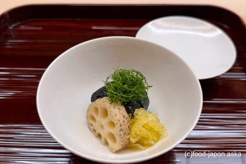 加賀野菜「ヘタ紫なす」は、ぎゅっと身が詰まっており美味。夏の「加賀れんこん」はあっさりシャキシャキ食感。「金糸瓜」もみずみずしくて歯切れが良く、涼を感じます。それぞれの野菜が持つ個性を生かしながら、全体は静かに調和。