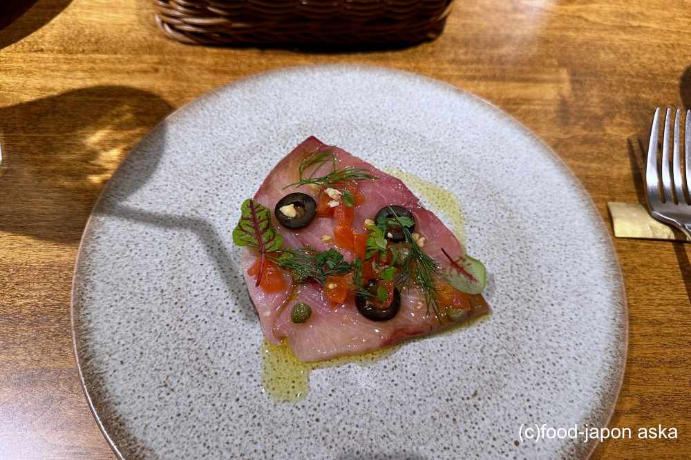 北陸の冬の王様、脂が乗った能登ブリを使ったカルパッチョとは嬉しい。軽やでフルーティーな酸味がアクセントに。