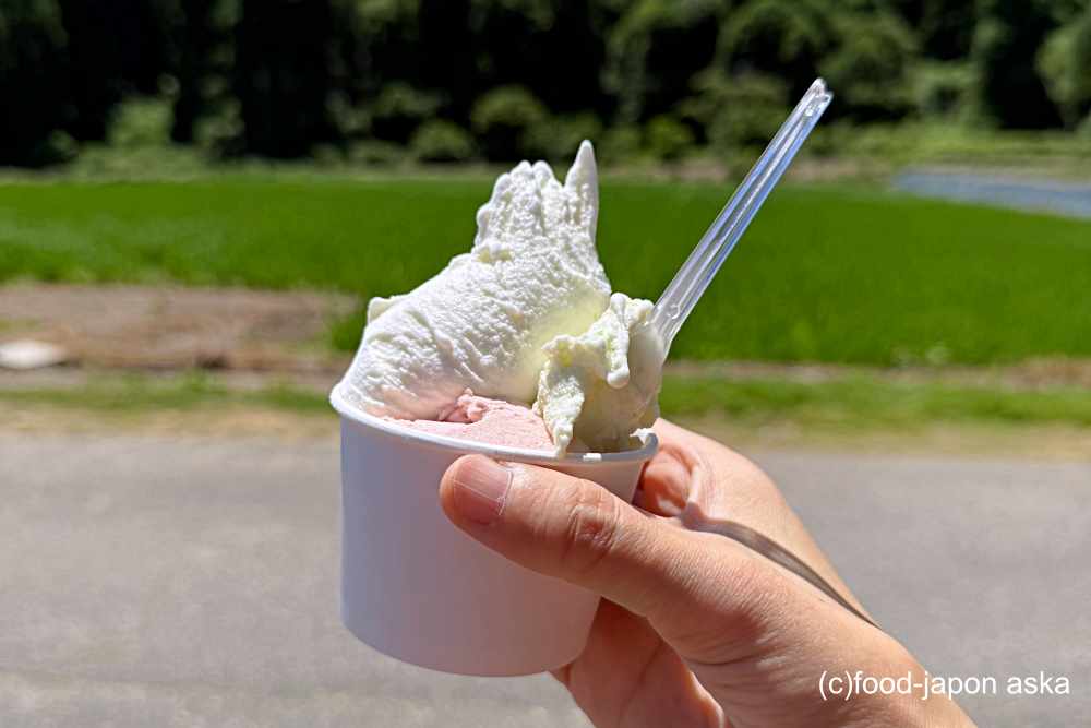 MALGAはイタリア語で「小高い丘にある牧場」の意で、世界農業遺産に認定された奥能登でのびのび育ったホルシュタイン乳牛の生乳を100%使用しているそうなのですが、その店名にも呼応する風景が広がっています。牛の飼料となる牧草も、栽培過程での農薬の使用は一切ないそうですよ。ベースのおいしさは言わずもがなですね。