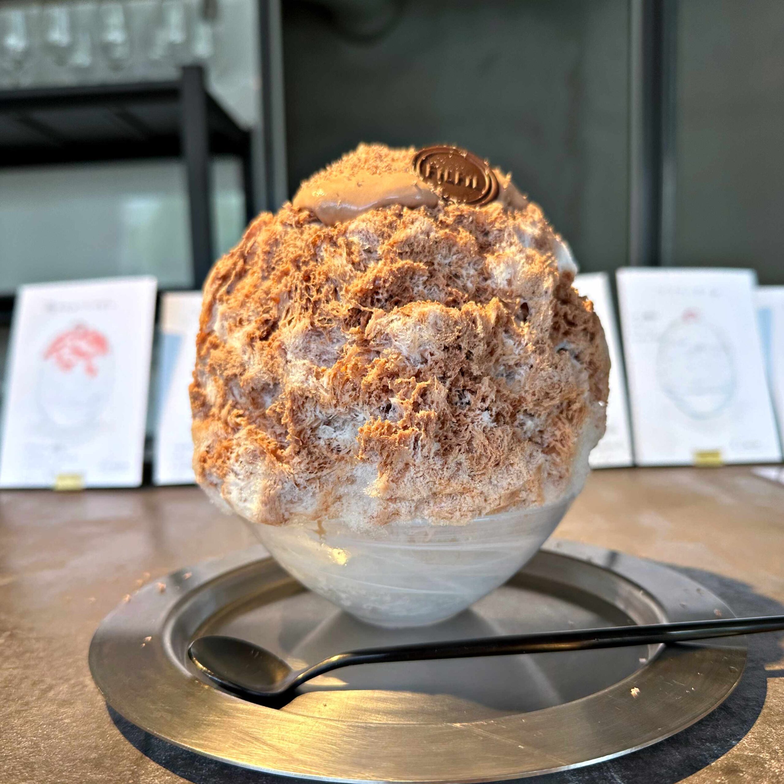 そこに重なるのが、自家製チョコレートのさまざまなパーツで、口に入れるたびに異なる表情を見せてくれます。練乳に加えられたトンカ豆練乳のふくらみのある甘やかさが顔を出して、ふんわりした練乳が氷の口溶けにシンクロし、口当たりにまとまりがあるのもさすが。ぜひチョコレート専門店のかき氷を食べてみてください。