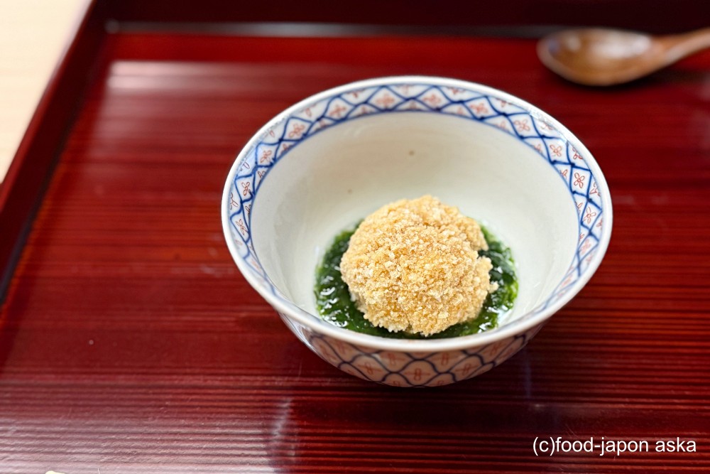 ・鱈の白子、香煎揚げ、あおさ銀餡
