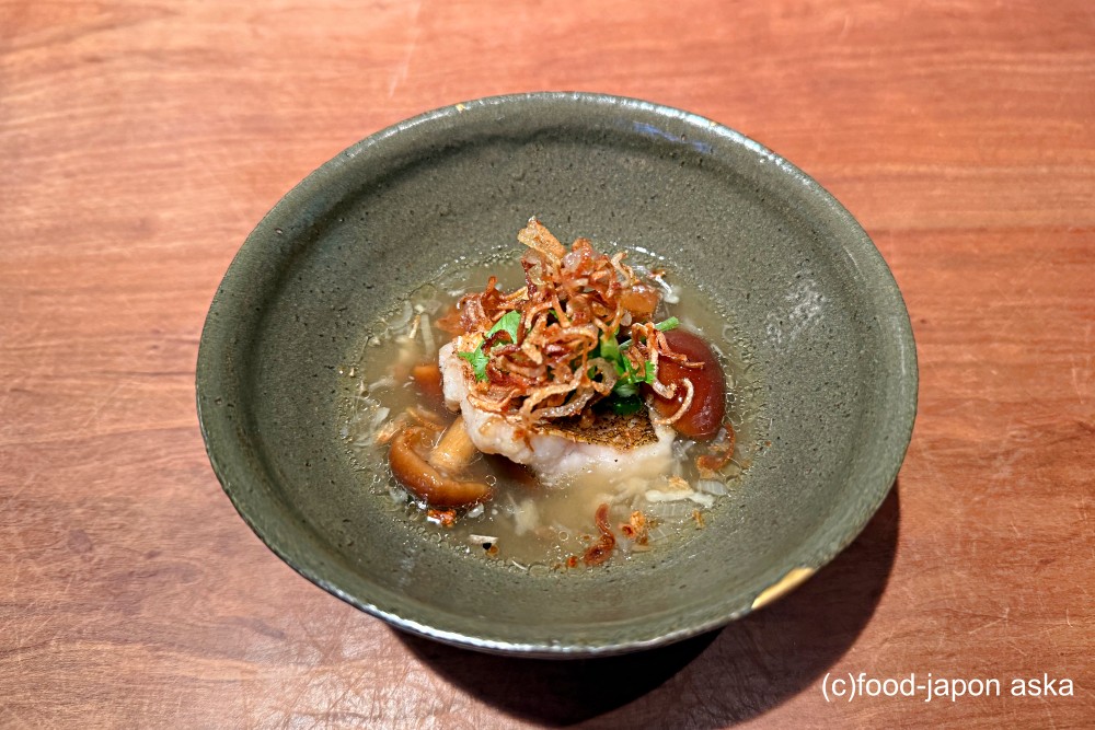 コースを期待させる同店らしい序章。和食に通じる繊細なスープに、鯛とタイの風味が広がり、軽やかな余白も美味。