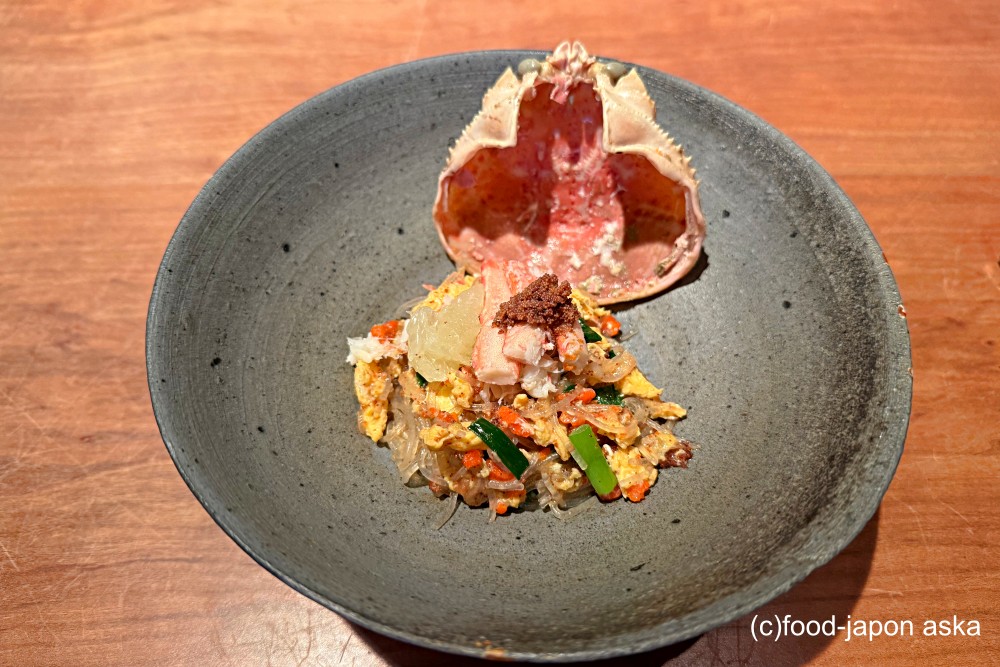 記憶に残る美味しさ。甘海老のエビ味噌「カピ」を効かせてあり、濃厚な香箱蟹の内子に寄り添う。絶品。