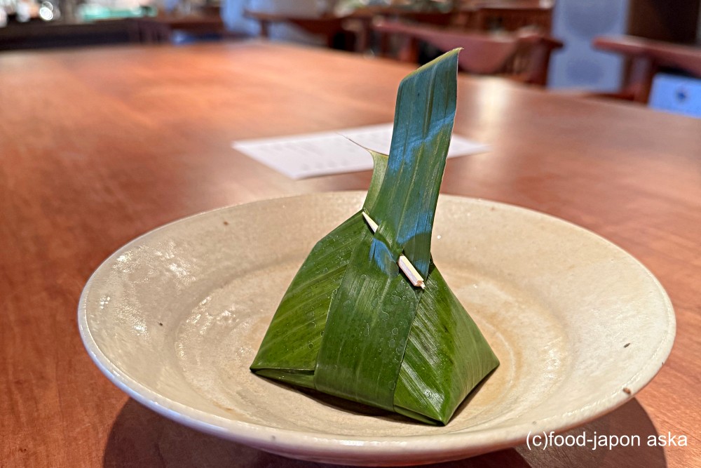 バナナの葉を開いた瞬間、湯気と共にハーブの風味が鼻腔をくすぐります。包み蒸しにすることで溢れるスズキのジュがとくとくと余韻に広がる。