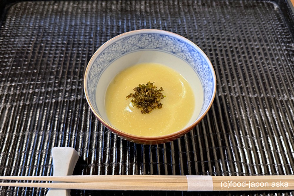 蓋を外すと、岩海苔の磯の香りが広がる。お出汁は甘鯛から取ったもので、品があって繊細で、甘さがとくとくと余韻する。