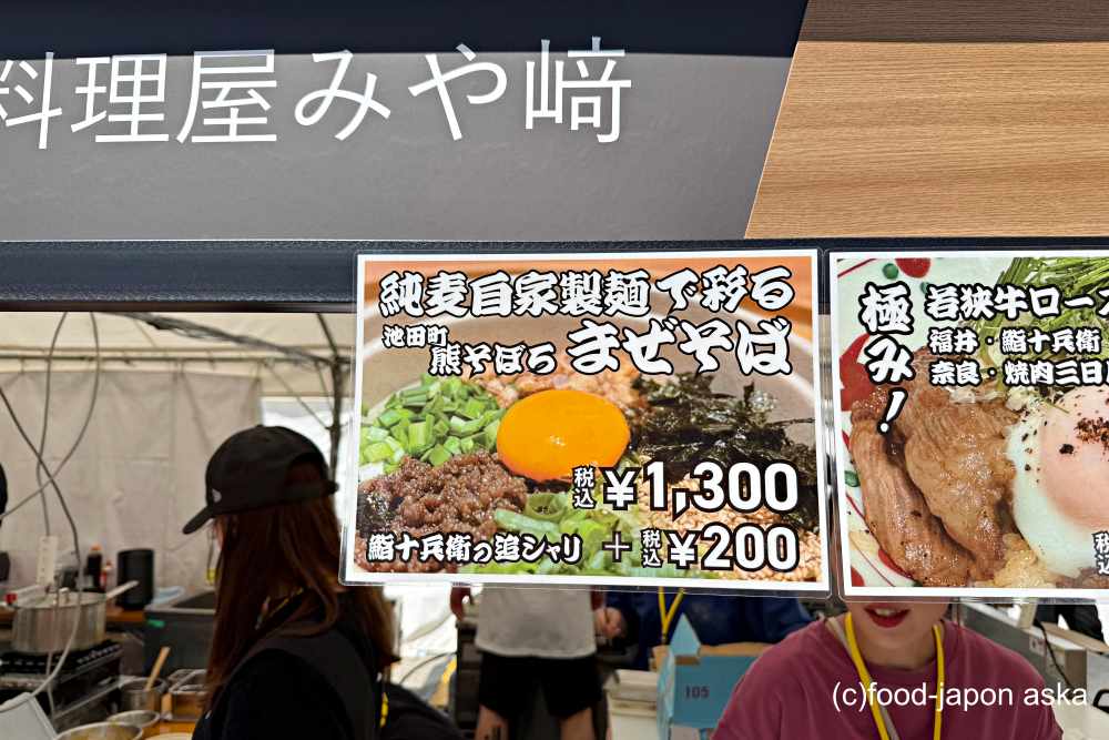 東京都にある住所非公開の女性店主のラーメン店「純麦」がコラボ。福井県産「ふくこむぎ」を使用した、フェス限定のもちもち麺に、みや﨑特製のタレと池田町産の熊肉が絡む。さらに鮨十兵衛のシャリを添えた、贅沢な一杯です。