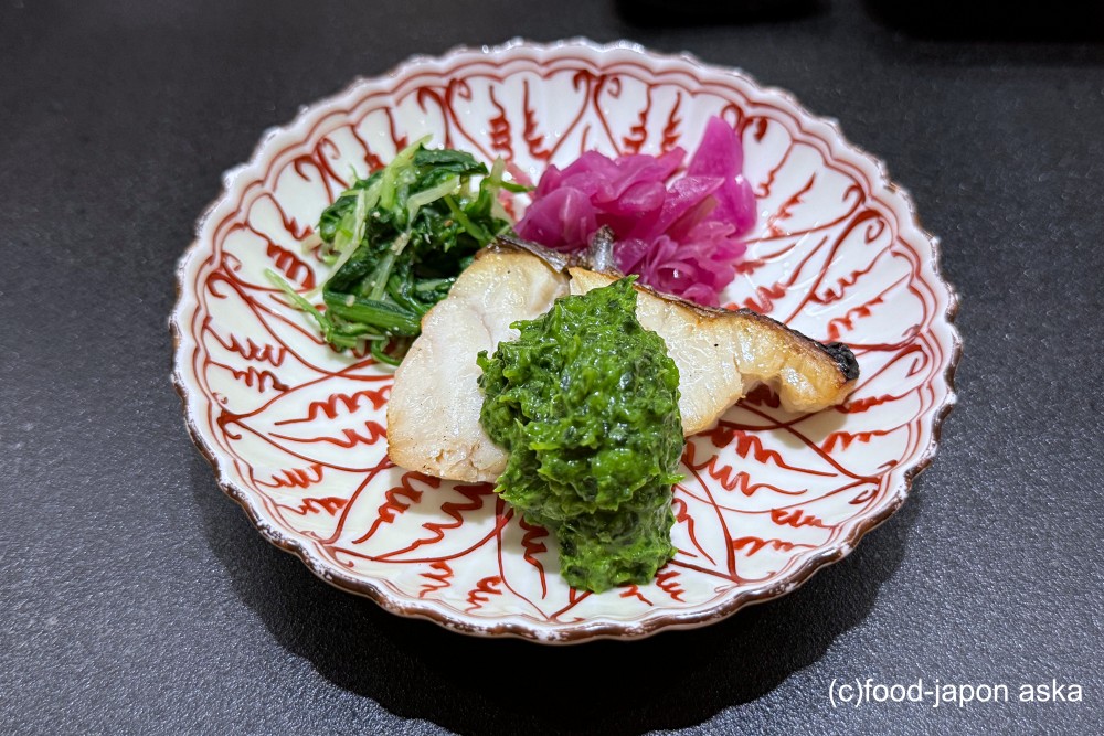 ・サワラ、ディノケールソース、黒龍酒粕