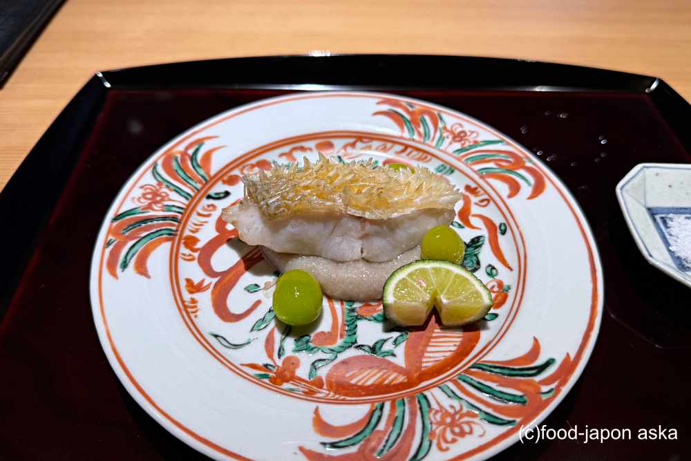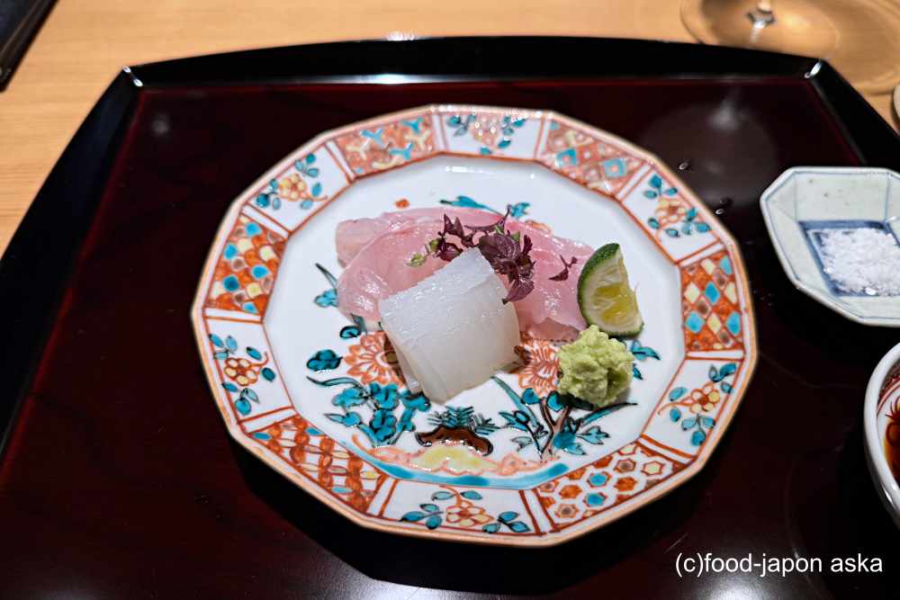 アラは面を取った引き方で、しなやかさが強調され、もちっとした食感が美味。器の選び方にも凛とした潔さがありますね。