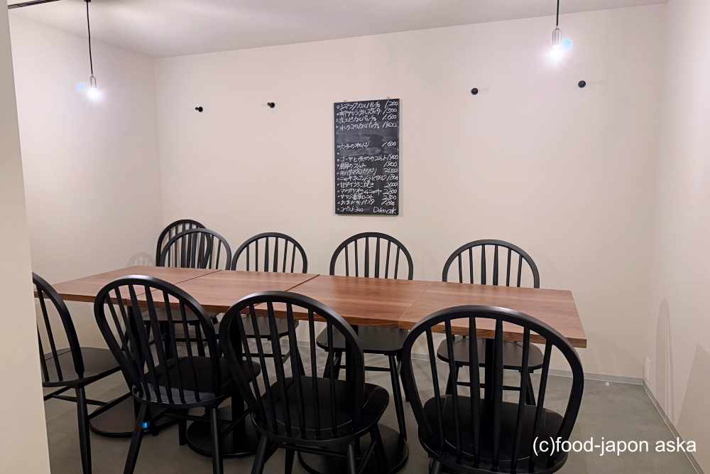 店内はオープンキッチンのカウンター席が7〜8席と、奥にはテーブル席がありグループ利用に人気。