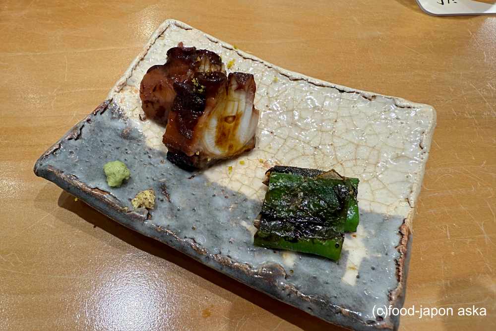能登半島の先端である珠洲で、大将が釣ってきた3キロのアラを軽い炙りで。冒頭に釣りの美味しいアラが出てきて、インパクトありました。