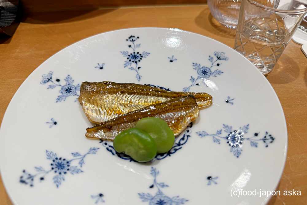産のハタハタを西京味噌漬けで甘味とコクを添え、さらに繊細な身は生かしてあるのが素晴らしい。酒肴としても秀逸。