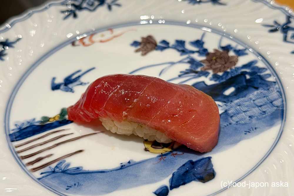 寝かせによって引き出された旨味としっとりとした舌触り。咀嚼のたびに旨味が広がり、赤酢の酸味と絶妙に溶け合う。