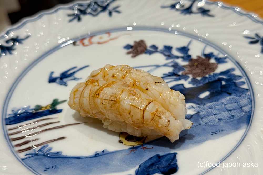 昆布の旨味をほんのり甘海老のせ、ただ甘いだけではない奥行きのある味わいに昇華。