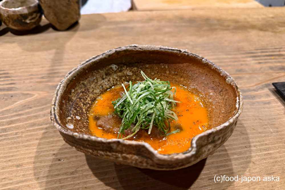 たたいたオクラの青々とした香りを鰹出汁が優しく包み、白ネギがとろみとコクを与えています。ポタージュというより“すり流し”に近い趣で、和食の技術が活きています。