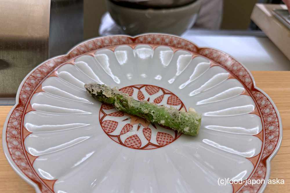 野々市市で無農薬栽培されるアスパラは、良い時期がわずか10日くらいだそう。今朝どれのフレッシュなものを、2つの部位の食べ比べで。上部は塩が合い、土に近い部分は水分量が多くててんつゆがぴったりでした。