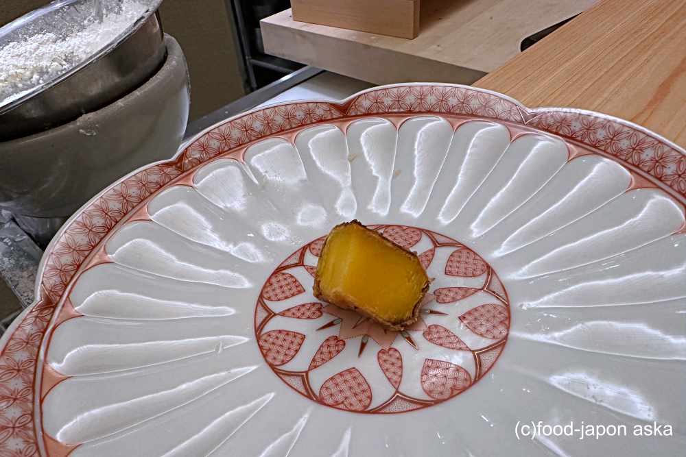 金沢の加賀れんこんカリスマ農家、川端さんの蓮根の2節目を使用(蓮根は節ごとに食味が異なるため)。皮は香ばしく滋味あり、中はホクホク。
