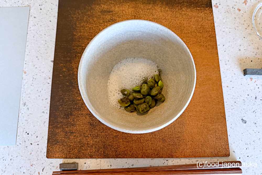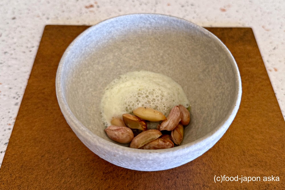 落花生、引き立てのそばで作ったそばがき、青大豆の豆乳。