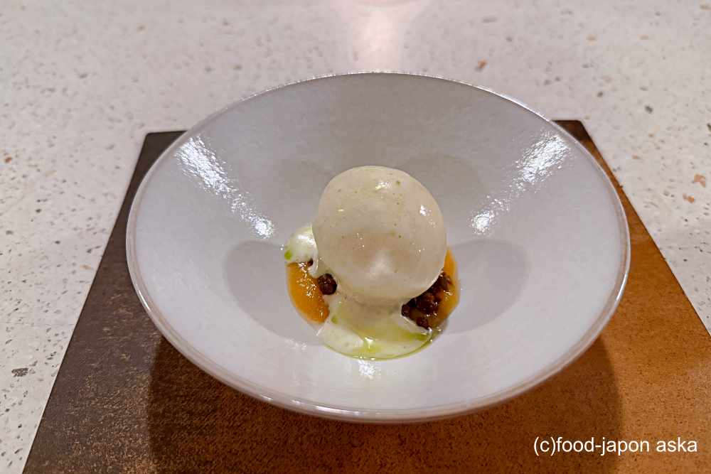 中盤の「猪」は、ミンチと包丁でのカットと筋などで、野生味・香り・食感・ジューシーさが共存していました。ノンアルペアリングの“蓬コーラ”との組み合わせは、まさにこの土地でしか表現できないテロワールの共演。